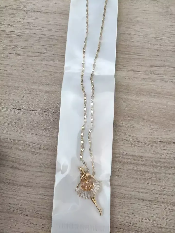 O Colar com pingente de bailarina é uma peça linda e delicada! Perfeito para se presentear ou para presentear a alguém que ama ballet. Possui banho em Ouro rose gold ou banho em Ouro dourado 18k com deltalhes em pedras de zircônias.