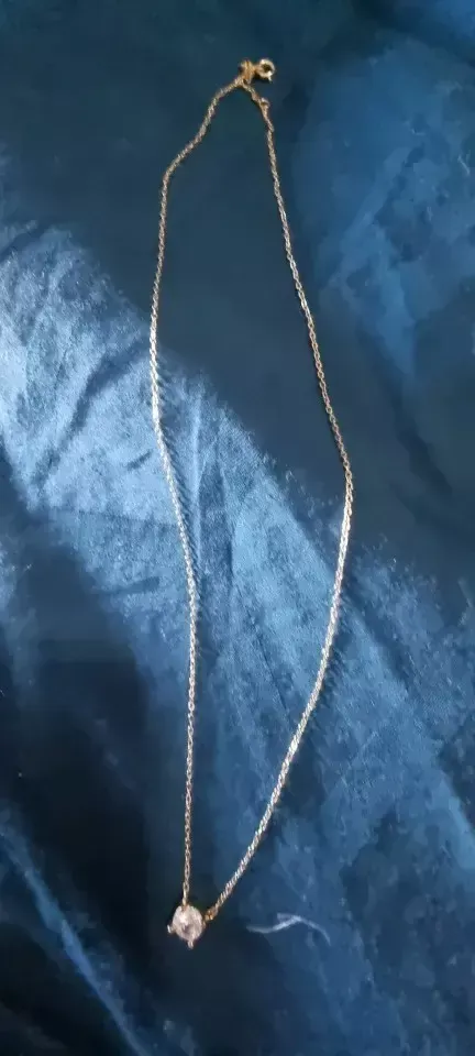 O colar com corrente em elos finos é folheado a ouro e é uma peça linda que realça toda a delicadeza e feminilidade da mulher.